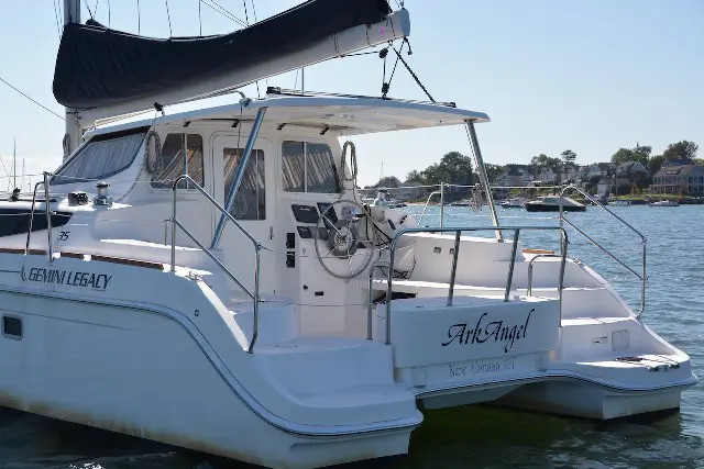 This 2013 Gemini Legacy 35 catamaran sails fast and level, provides a stable platform for water activities and leisure at anchor, accommodates 10 to play, 6 to sleep, and gives a couple a perfect getaway for quick evenings or extended cruises. Has been professionally stored and maintained in Norwalk spending the winters wrapped and dry on the hard. In season, her local zone is all of LI Sound with frequent evening sails, overnights, and multiday cruises. Three sails accommodate all conditions moving up to 9-10 knots, twin diesels drive at 6-7 knots and offer great maneuverability. Autopilot, electric freshwater head, full galley, enormous cockpit and salon, great forward deck for lounging. 14' beam fits in most slips. LED lighting, extra batteries, and solar panel mean you can stay out for long periods. The pictures were taken end of season - the hull gets a full clean and paint each spring. The video has footage of the asymmetric in action.